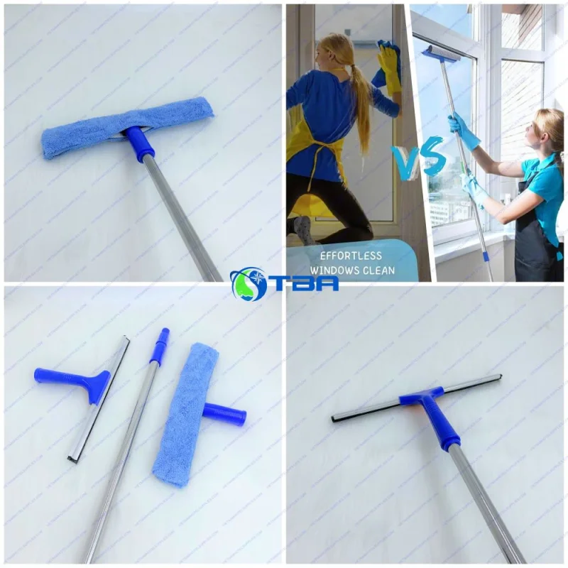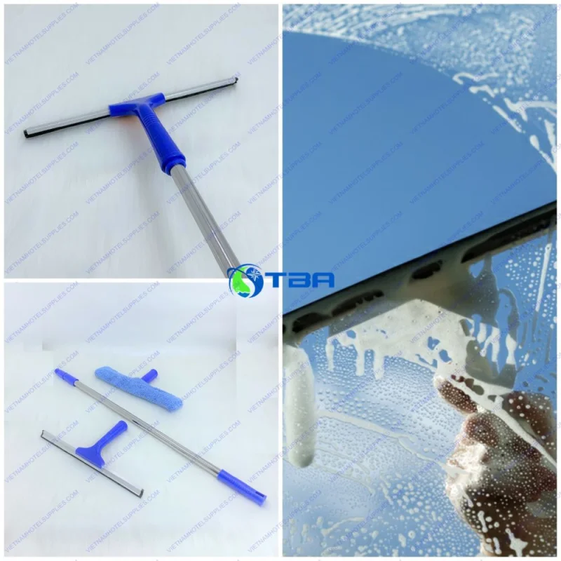 Lắp ráp bộ dụng cụ: Gắn đầu lau vào cán inox chắc chắn và kiểm tra lại độ vững chắc của tay gạt kính trước khi sử dụng.