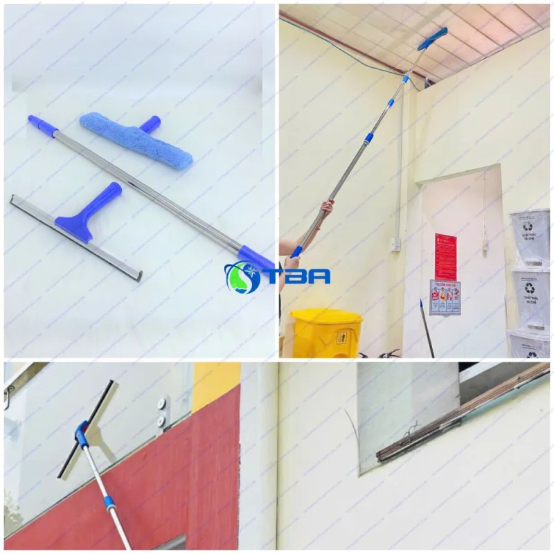 Cán dài 5 mét: Tạo điều kiện làm sạch kính ở độ cao mà không cần đến thang hay giàn giáo.