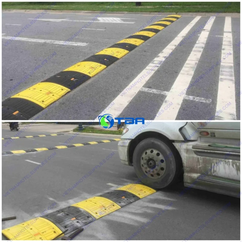 Thiết kế bề mặt của sản phẩm đảm bảo độ bám cao, chống trơn trượt ngay cả trong điều kiện ẩm ướt. Điều này đặc biệt quan trọng với các xe container hoặc xe tải nặng, vì bánh xe lớn có thể gây trượt nếu gờ giảm tốc không đủ độ bám. Ngoài ra, sản phẩm còn có thể ghép nối liên tiếp để tạo dải giảm tốc dài, phù hợp với chiều dài đường nội bộ hoặc các khu vực nhà máy có lối ra vào lớn.